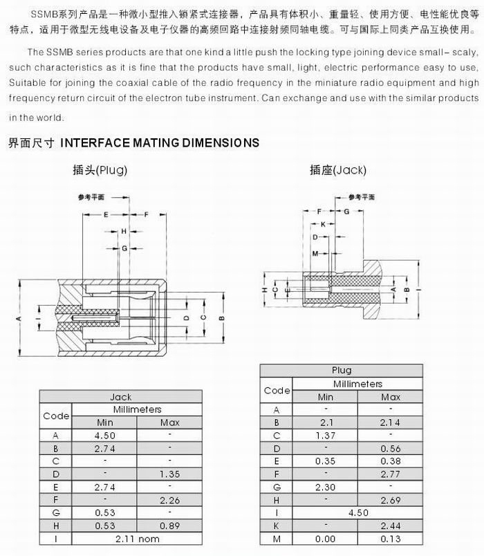 上一篇: SSMB型射頻同軸連接器